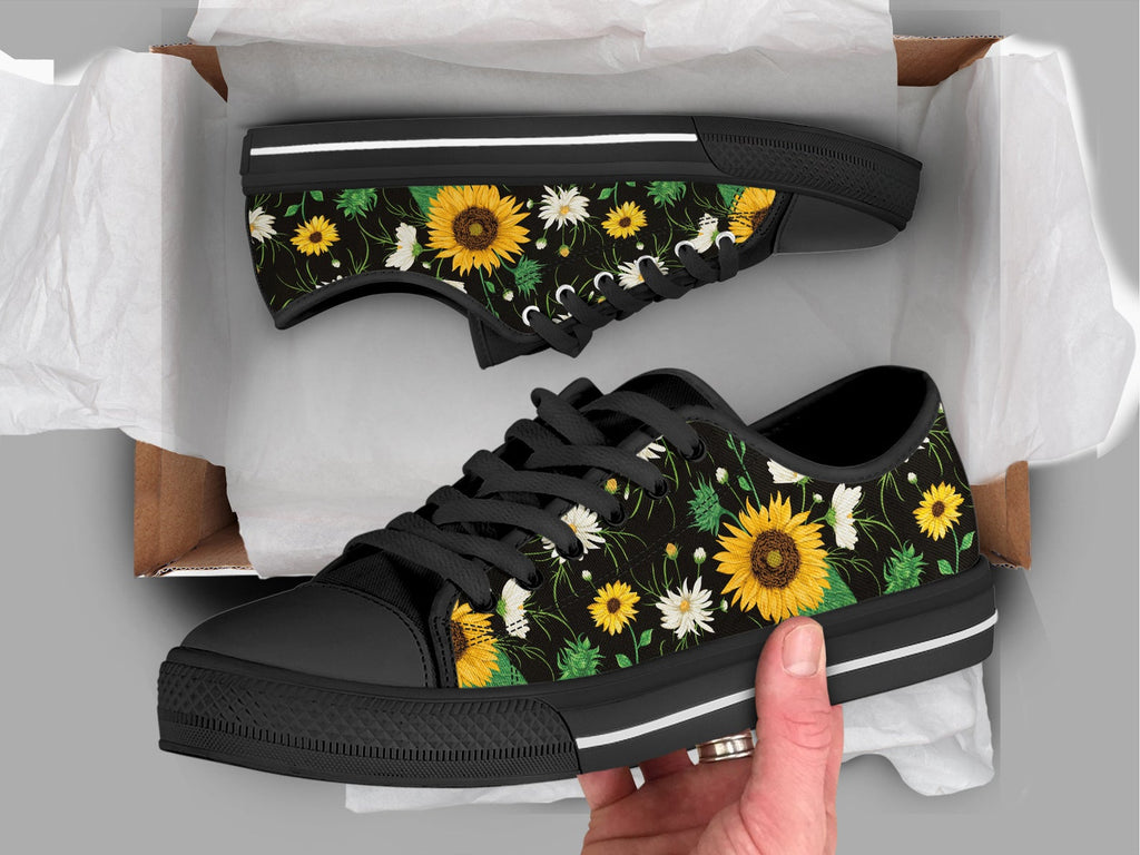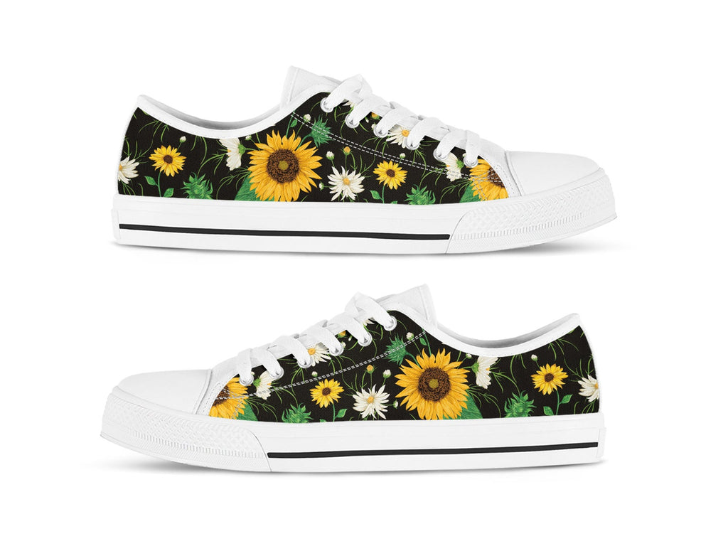 Black Sunflower Shoes Sunflower Sneakers Cute Shoes Sunflower Lover Gifts Custom Low Top Converse Style Sneakers For Adults Women & Men