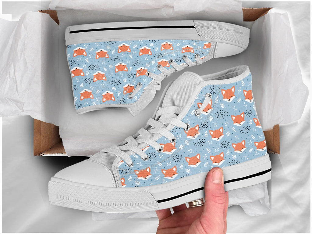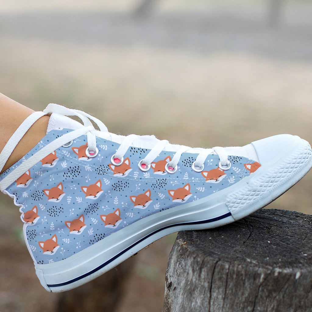 Blue Fox Shoes Fox Pattern Sneakers Fox Print Cute Shoes Fox Lover Gifts Custom High Top Converse Style Sneakers For Adults Women & Men