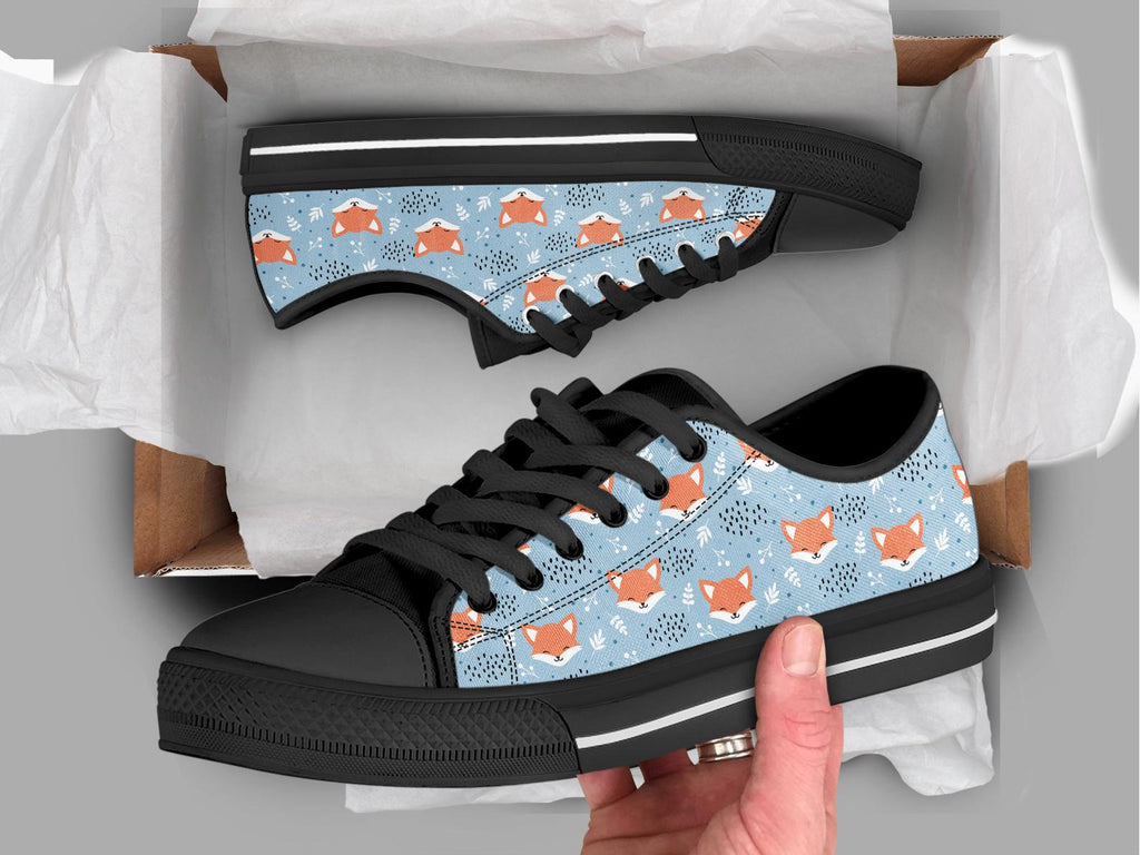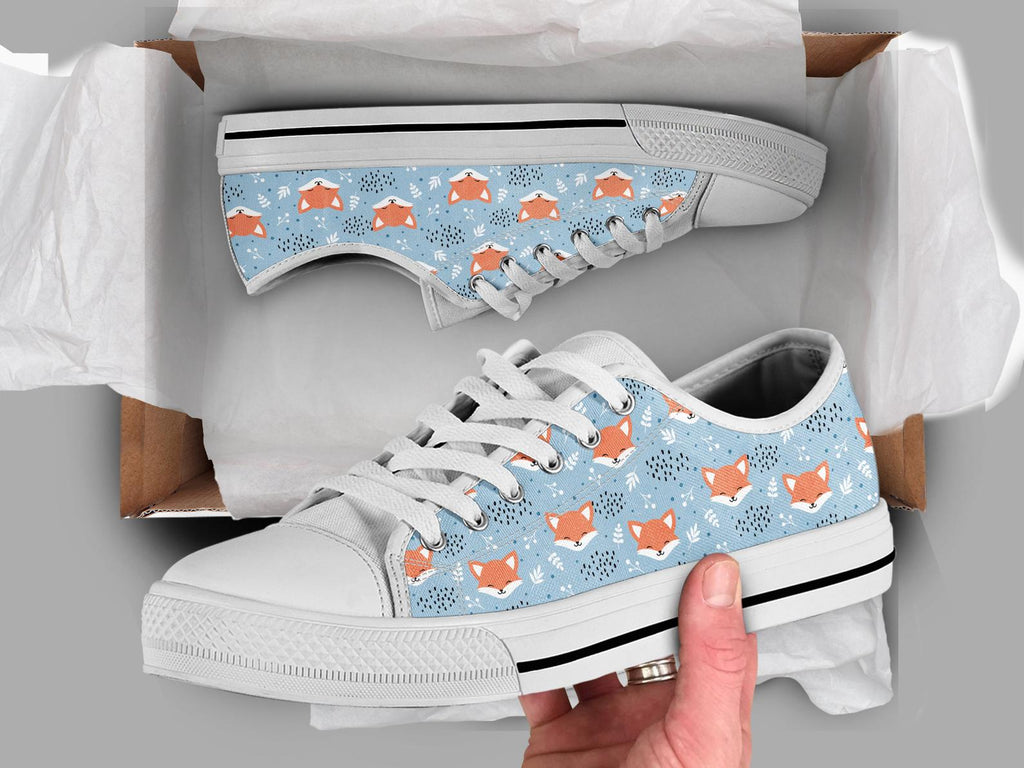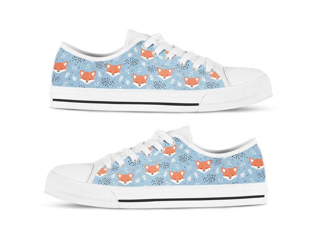 Blue Fox Shoes Fox Sneakers Fox Print Pattern Cute Shoes Fox Lover Gifts Custom Low Top Converse Style Sneakers For Adults Women & Men