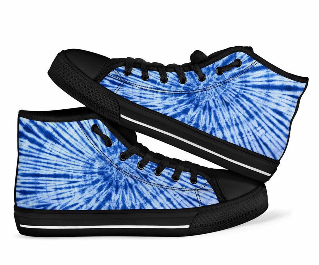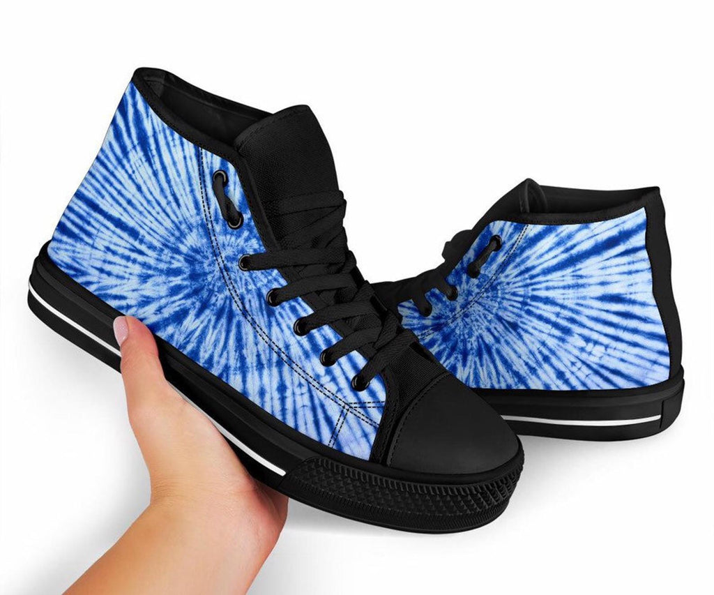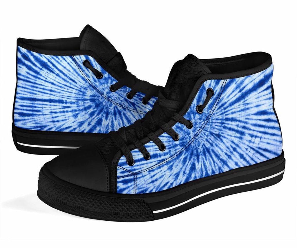 Blue Tie Dye Swirl High Top Unisex Sneaker Shoes