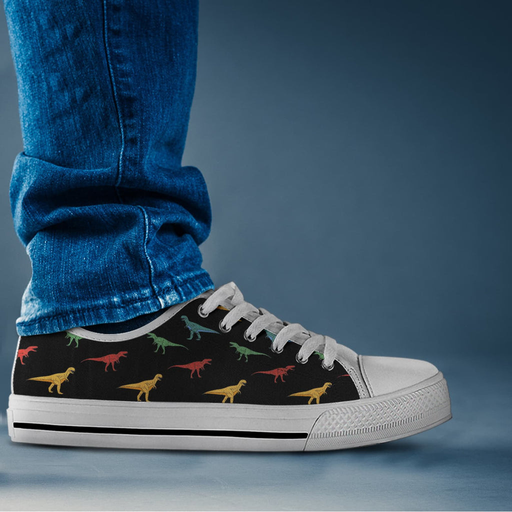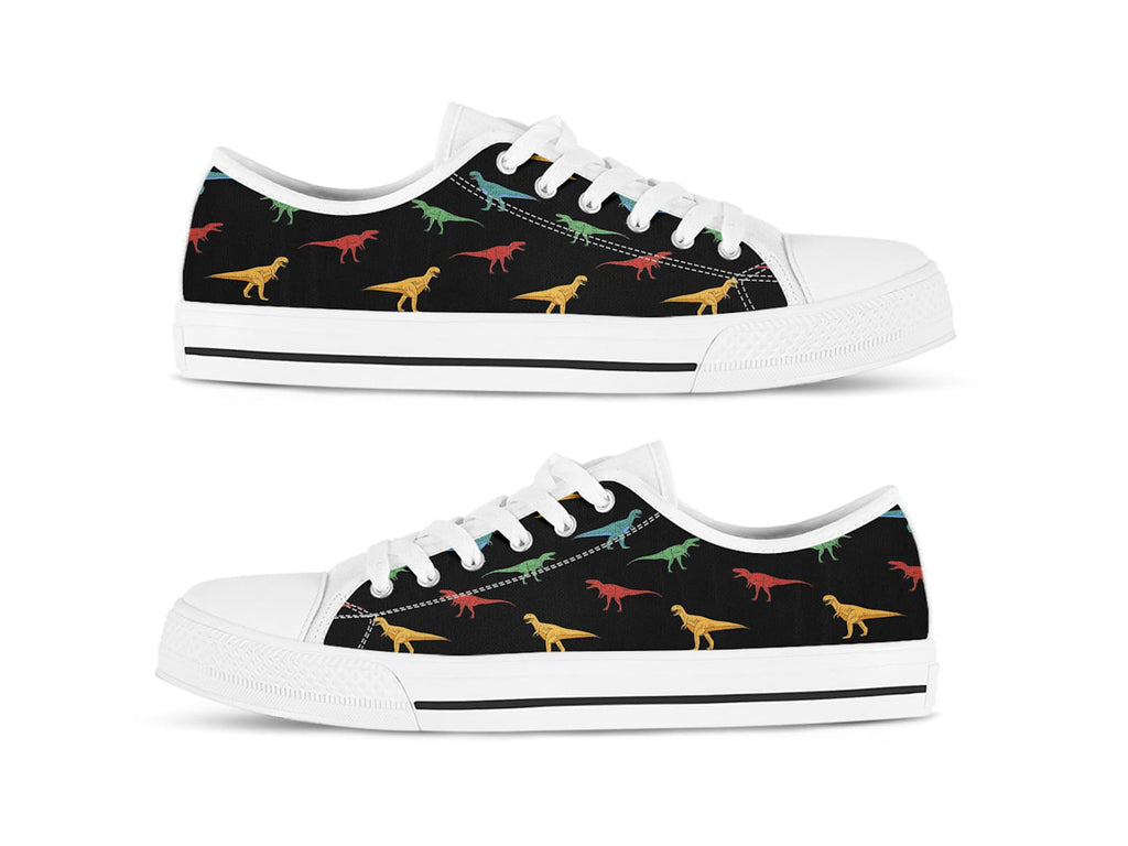 Colorful Dinosaur Shoes Dinosaur Sneakers Dinosaur Print Dinosaur Lover Gifts Custom Low Top Converse Style Sneakers For Adults Women & Men