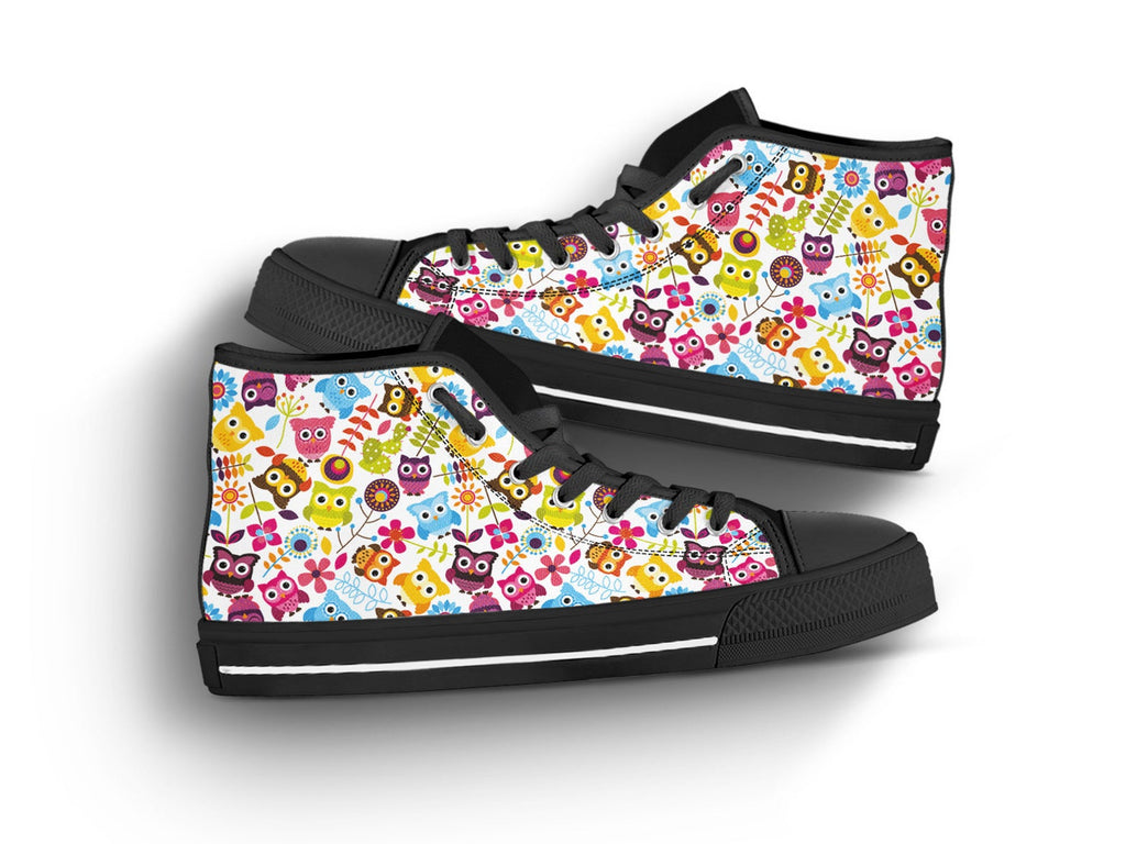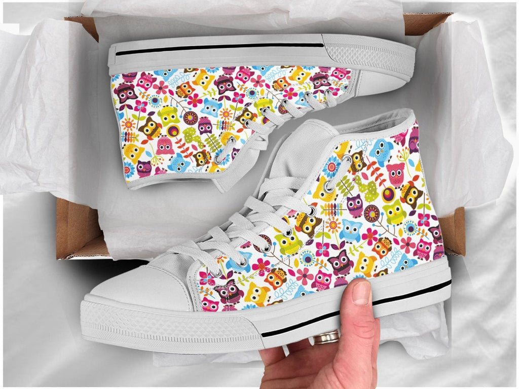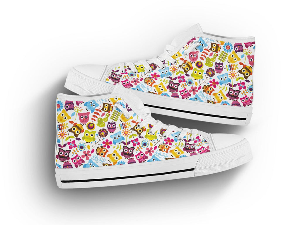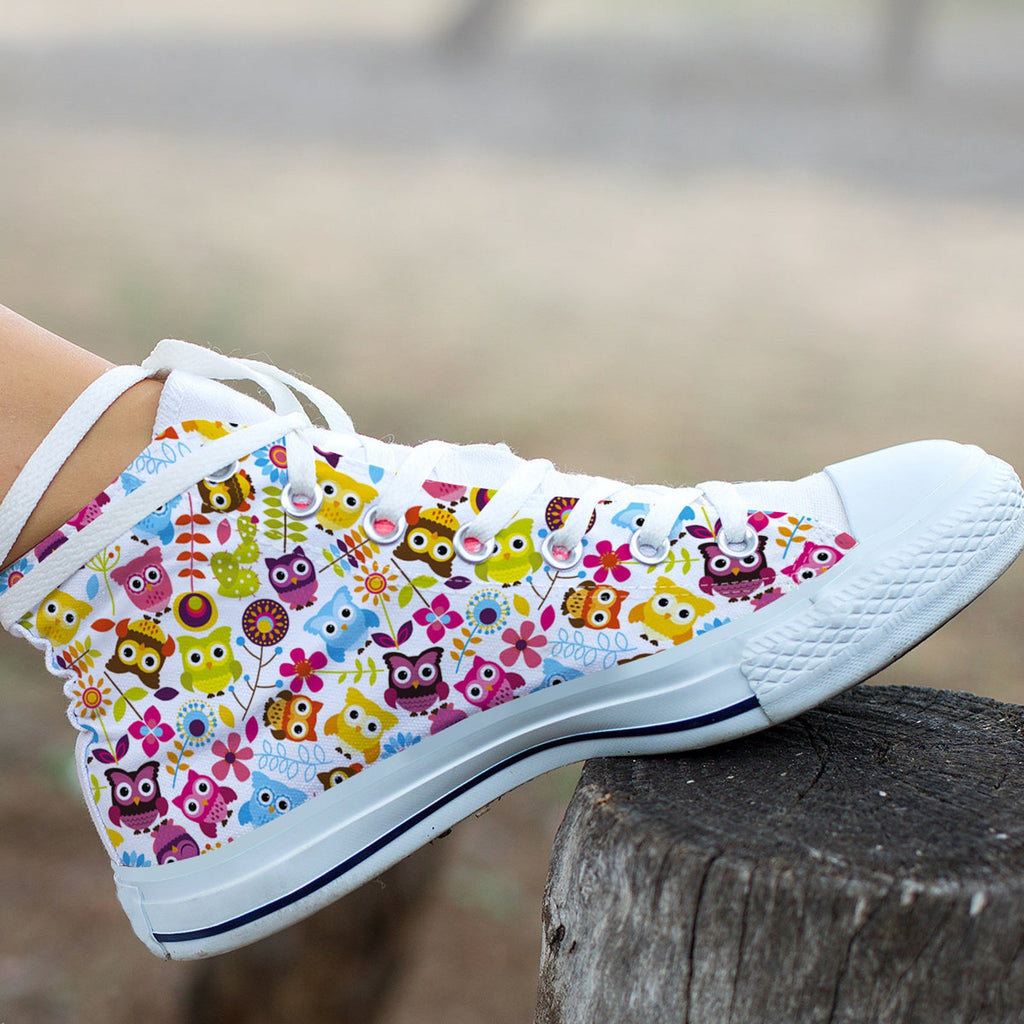 Colorful Owl Shoes Owl Sneakers Owl Print Pattern Cute Shoes Owl Lover Gifts Custom High Top Converse Style Sneakers For Adults Women & Men