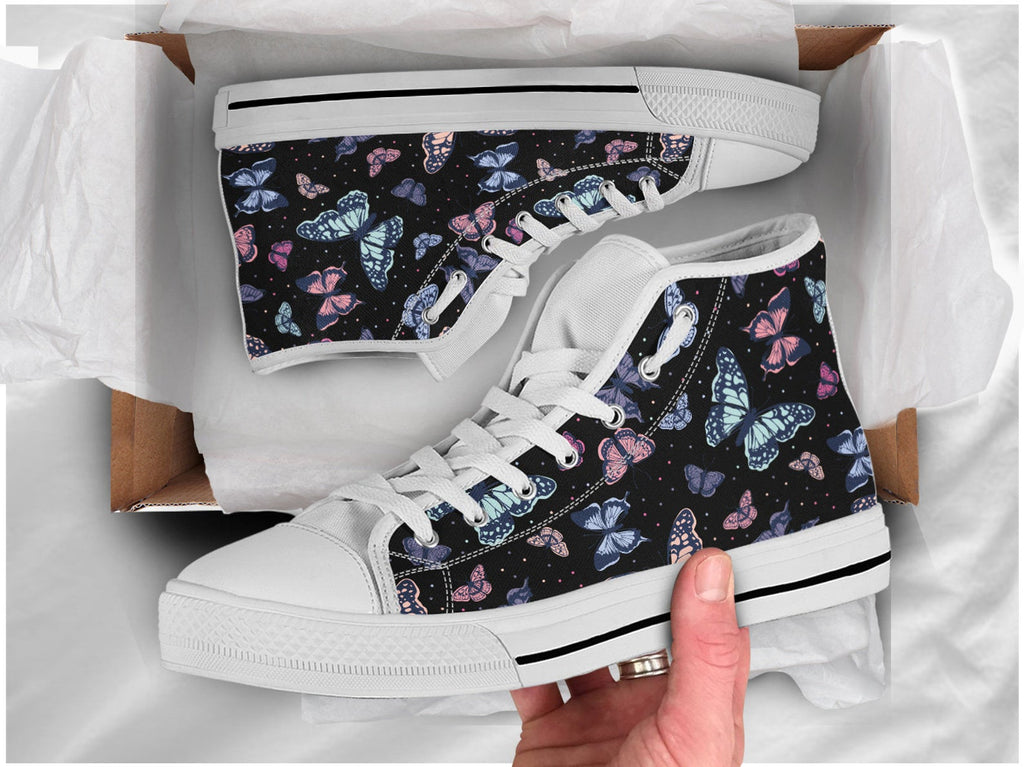 Cool Butterfly Shoes Butterfly Sneakers Cute Shoes Butterfly Lover Gifts Custom High Top Converse Style Sneakers For Adults Women & Men