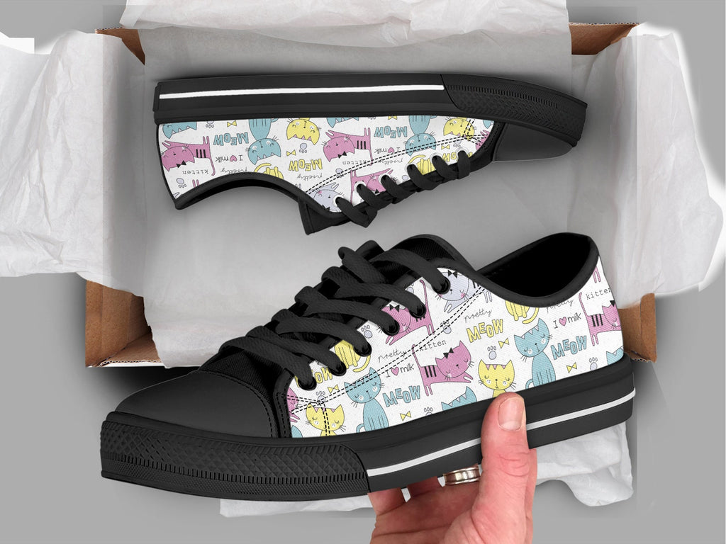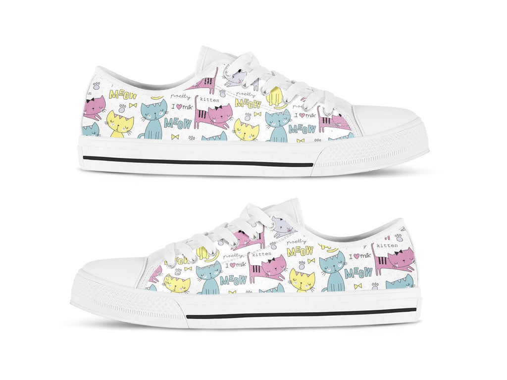 Cute Cat Shoes Cat Sneakers Cat Print Pattern Cute Shoes Cat Lover Gifts Custom Low Top Converse Style Sneakers For Adults Women & Men