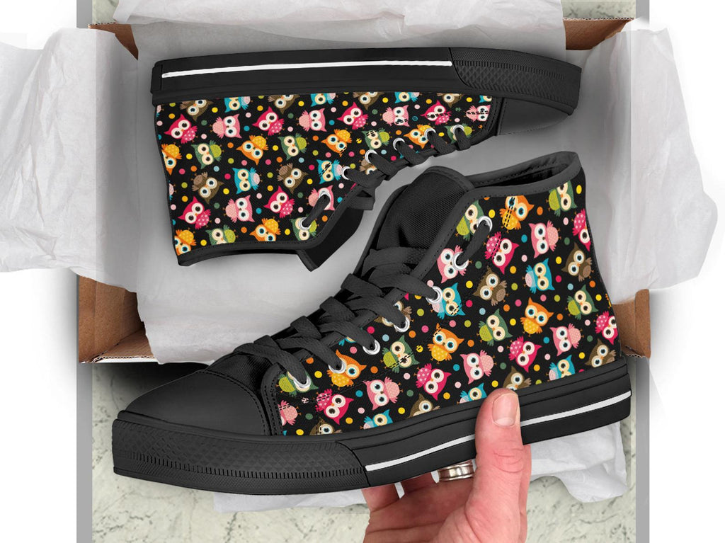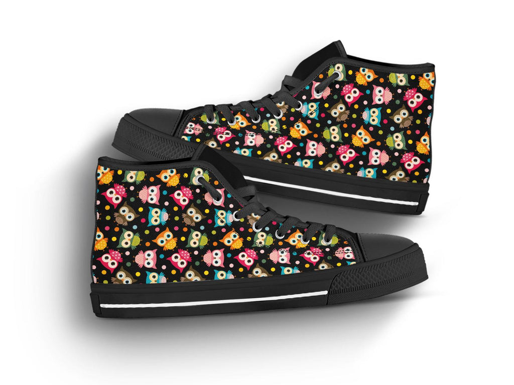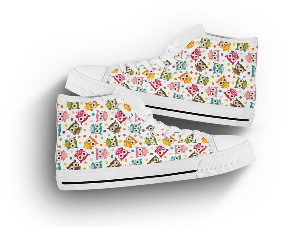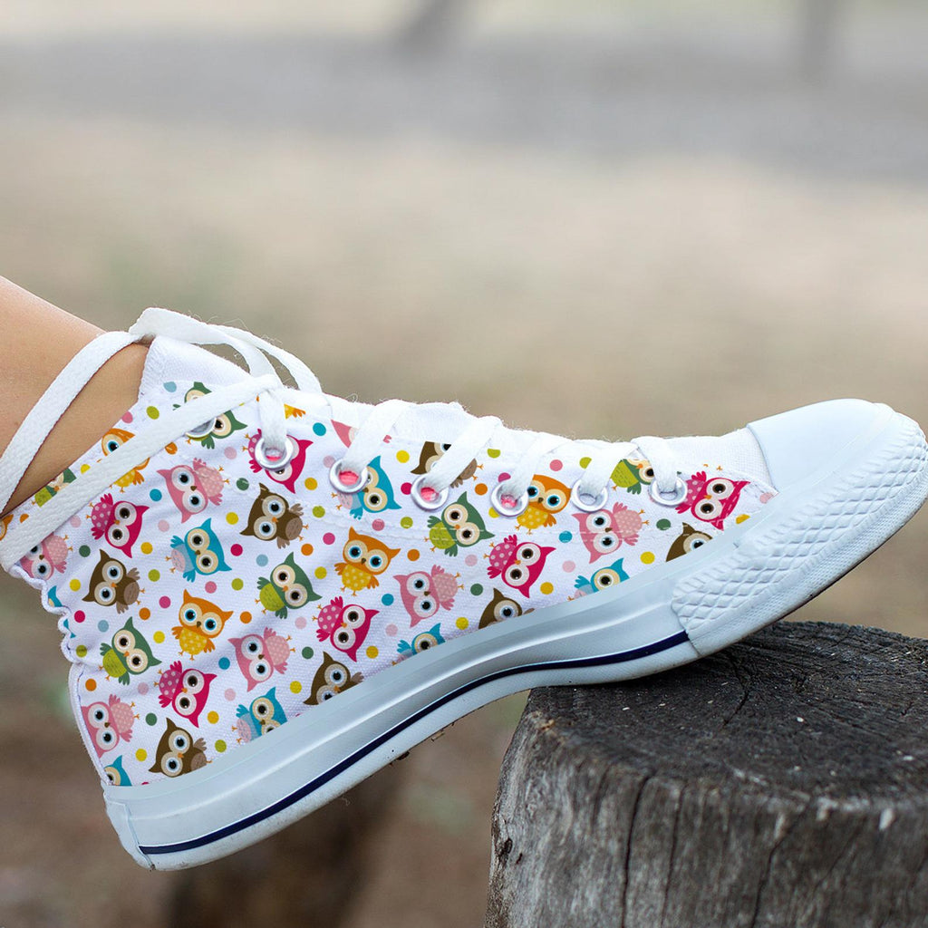 Cute Owl Shoes Owl Sneakers Owl Print Pattern Cute Shoes Owl Lover Gifts Custom High Top Converse Style Sneakers For Adults Women & Men