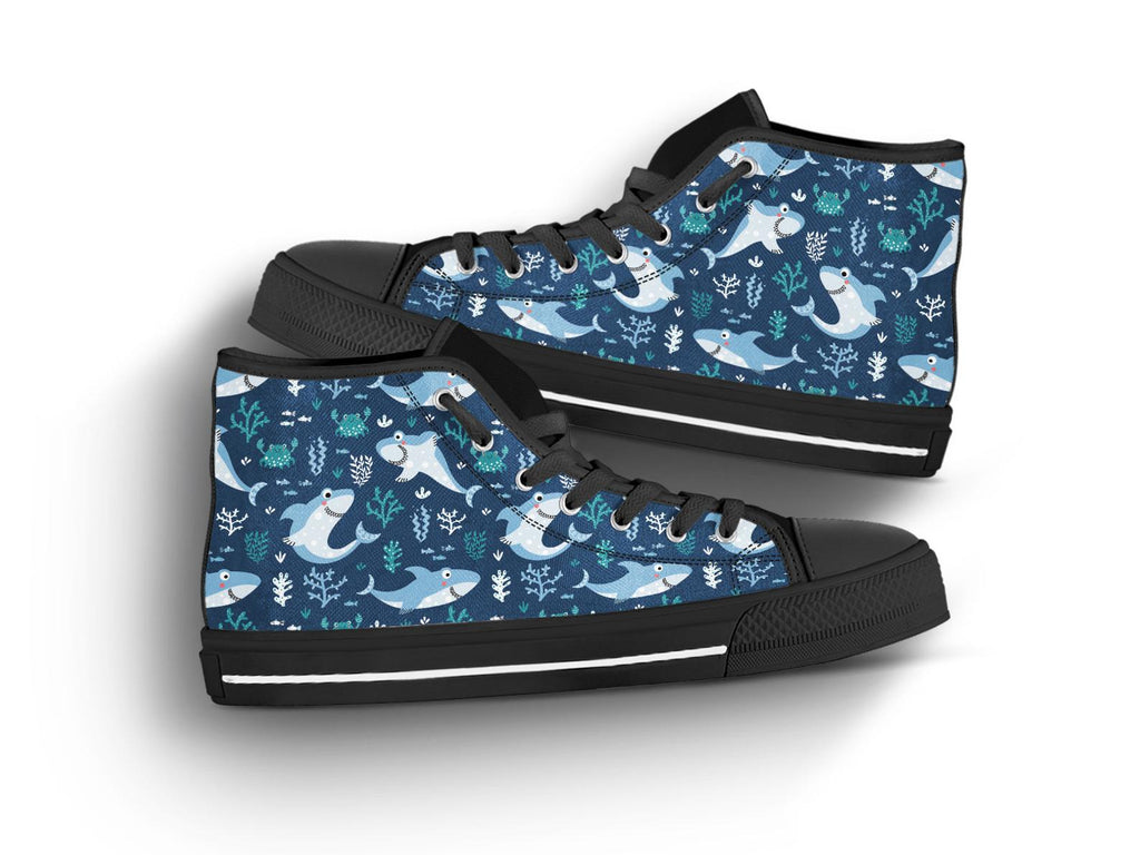 Cute Shark Shoes Shark Sneakers Cute Shoes Shark Lover Gifts Custom High Top Converse Style Sneakers For Adults Women & Men
