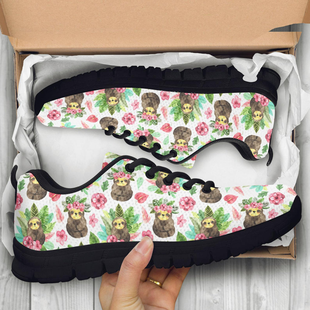 Floral Sloth Shoes Sloth Printed Sneakers Sloth Running Shoes Sloth Lover Gifts Clothing for Womens Mens Kids Adults