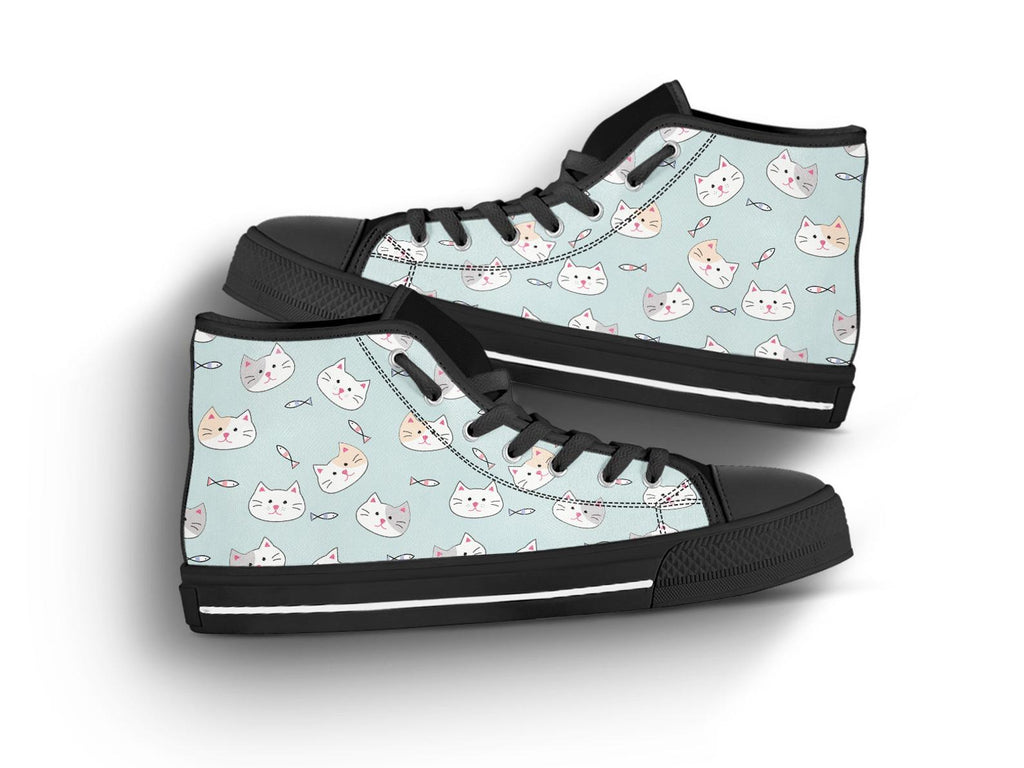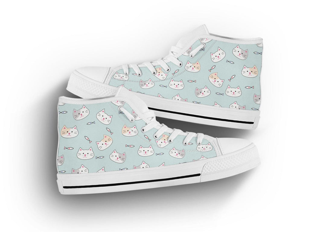 Kawaii Cat Shoes Cat Sneakers Kawaii Clothing Cute Shoes Cat Lover Gifts Custom High Top Converse Style Sneakers For Adults Women & Men