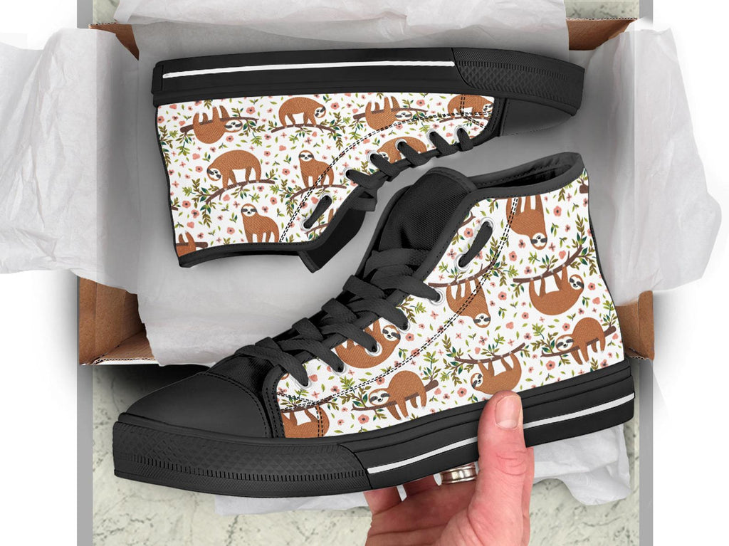 Lazy Sloth Shoes Sloth Sneakers Cute Shoes Sloth Lover Gifts Custom High Top Converse Style Sneakers For Adults Women & Men
