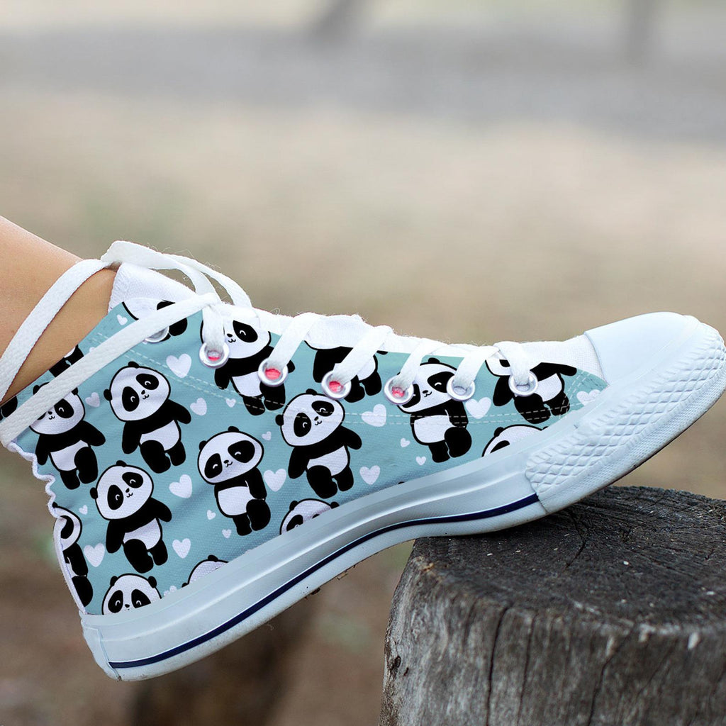 Lovely Panda Shoes Panda Sneakers Cute Shoes Panda Lover Gifts Custom High Top Converse Style Sneakers For Adults Women & Men