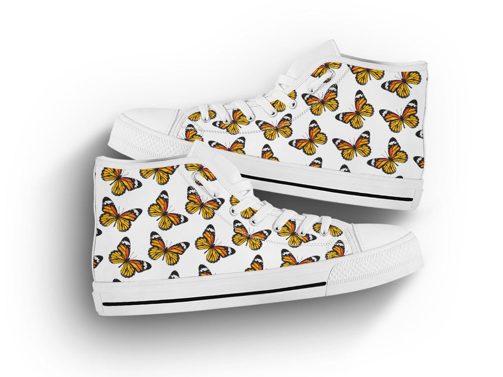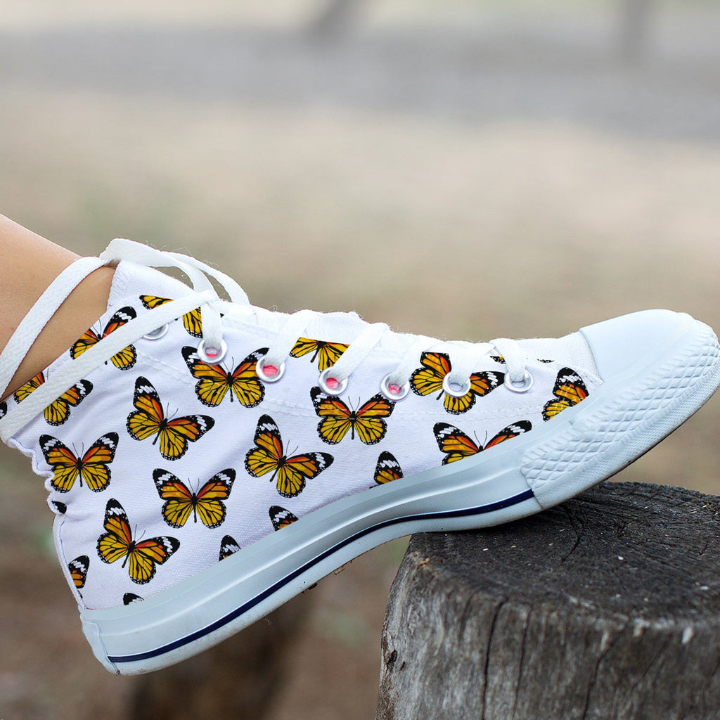 Orange Butterfly Shoes Butterfly Sneakers Cute Shoes Butterfly Lover Gifts Custom High Top Converse Style Sneakers For Adults Women & Men