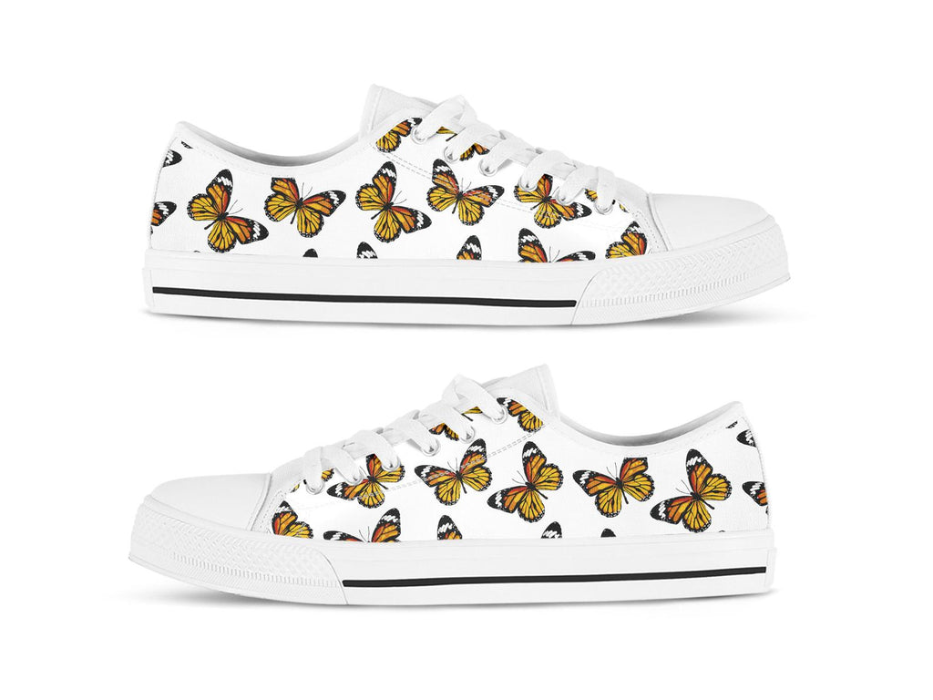 Orange Butterfly Shoes Butterfly Sneakers Cute Shoes Butterfly Lover Gifts Custom Low Top Converse Style Sneakers For Adults Women & Men