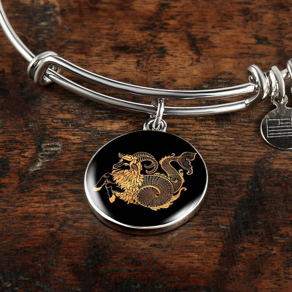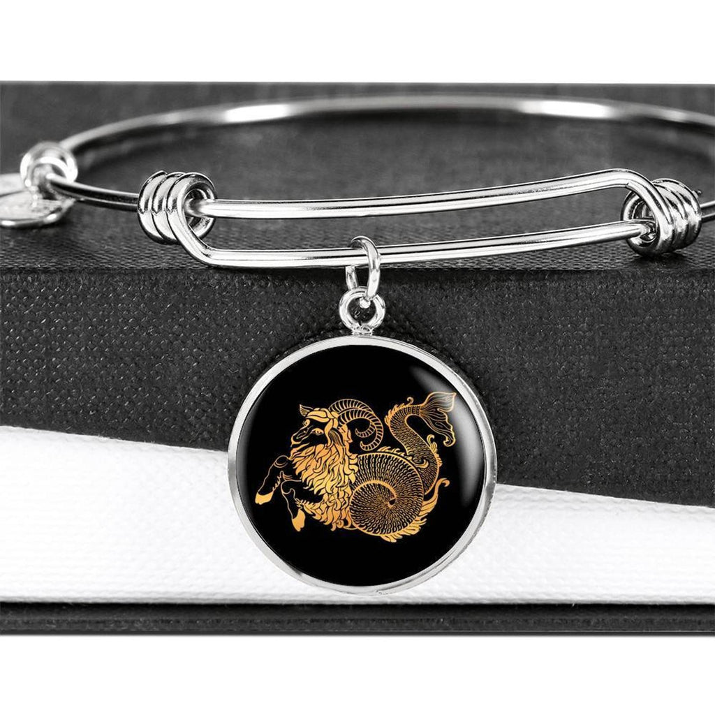 Personalized Capricorn Zodiac Bangle, Luxury Customized Circle Bangle, Engraved Capricorn Gifts, Capricorn Horoscope Present, Goat Gift