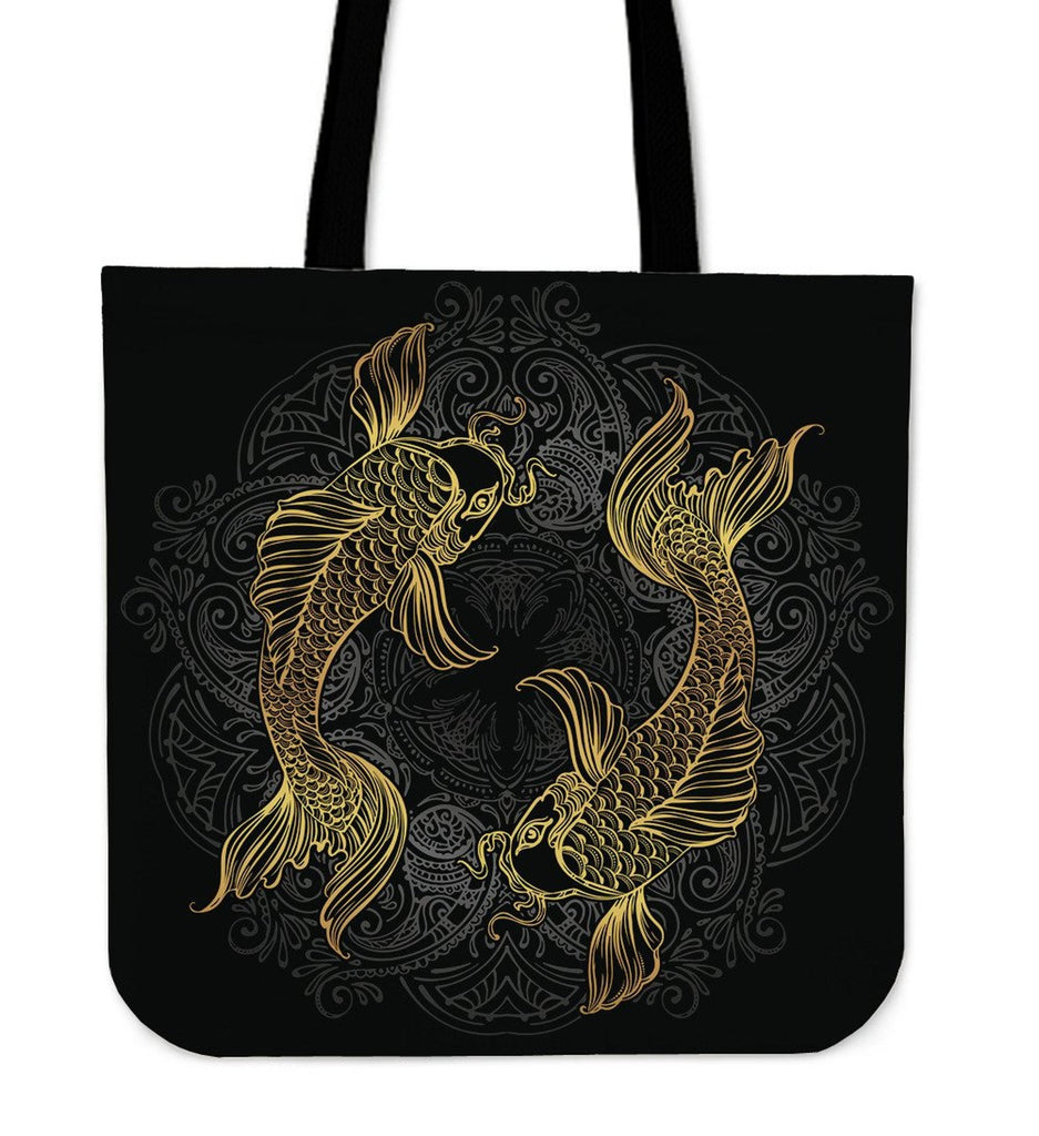 Pisces Zodiac Book Shopping Market Tote Bag, Fish Lover Gift, Pisces Pretty Art Print Tote Bags, Eco Friendly Pisces Tote
