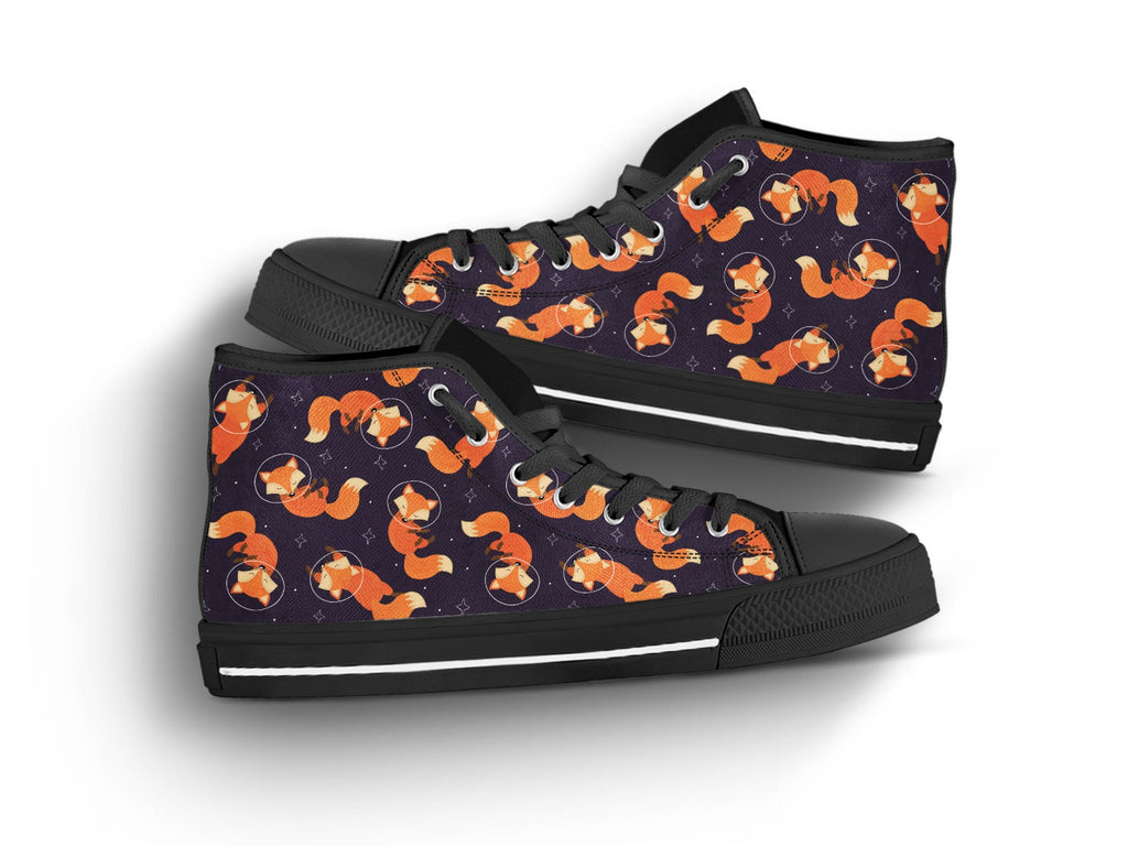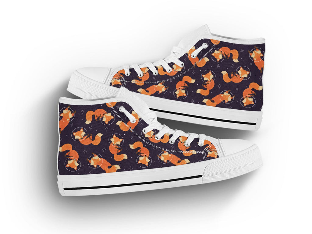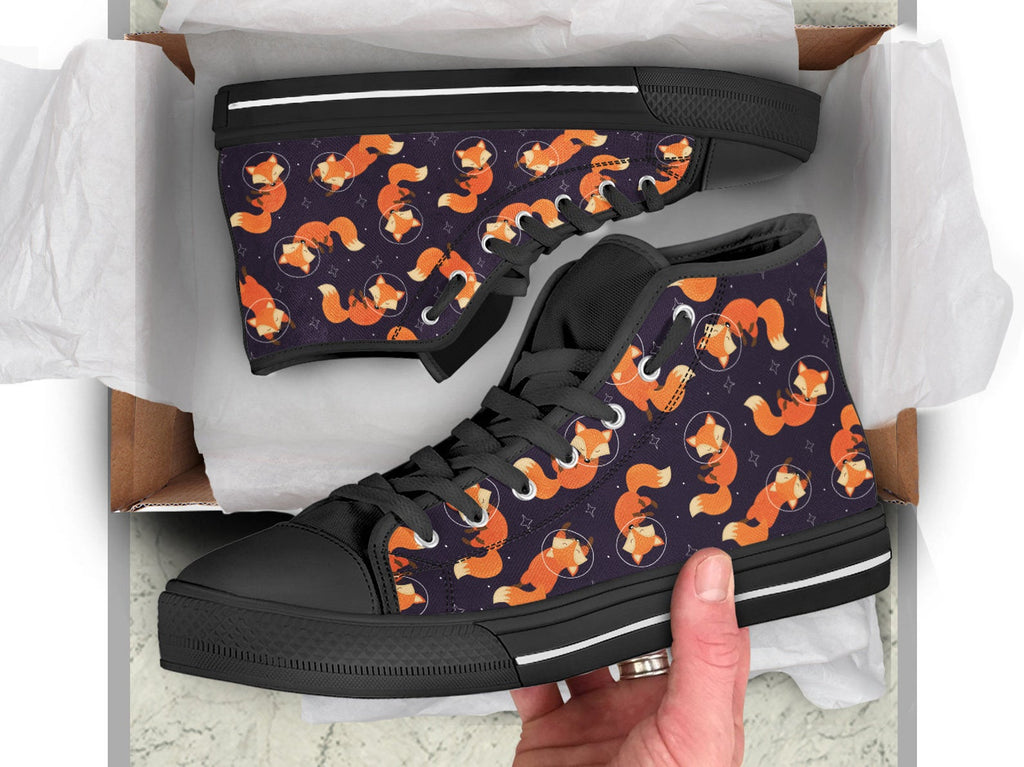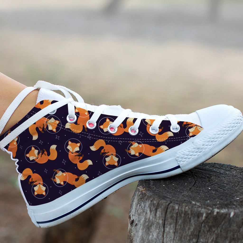 Space Fox Shoes Fox Pattern Sneakers Fox Print Cute Shoes Fox Lover Gifts Custom High Top Converse Style Sneakers For Adults Women & Men