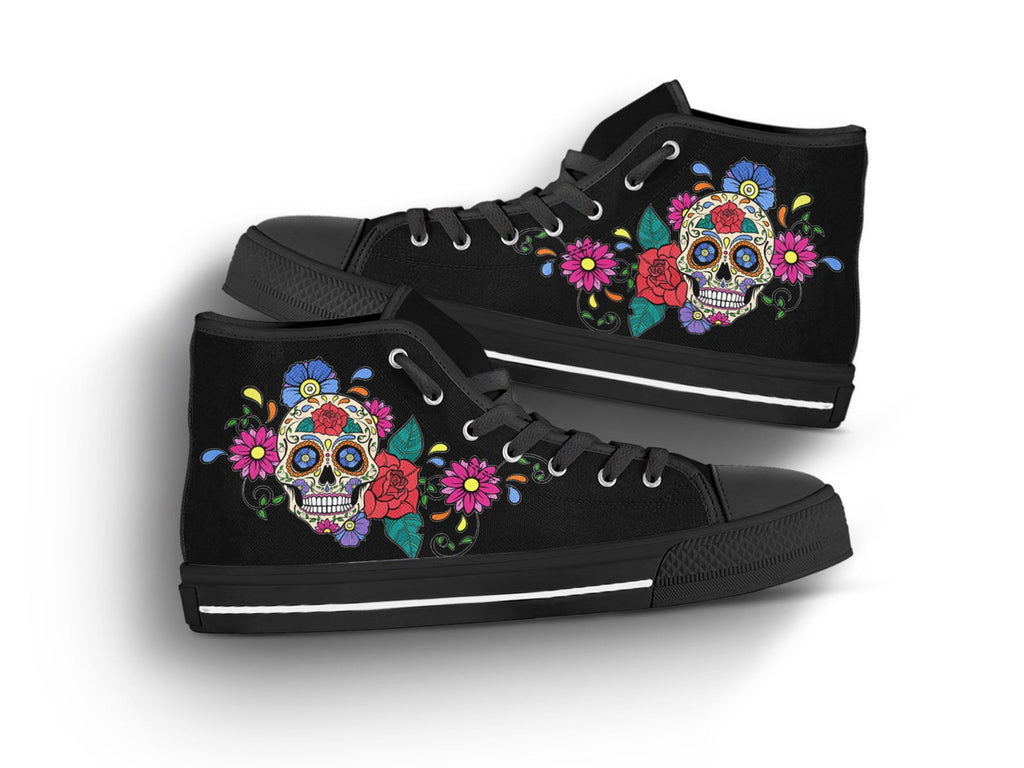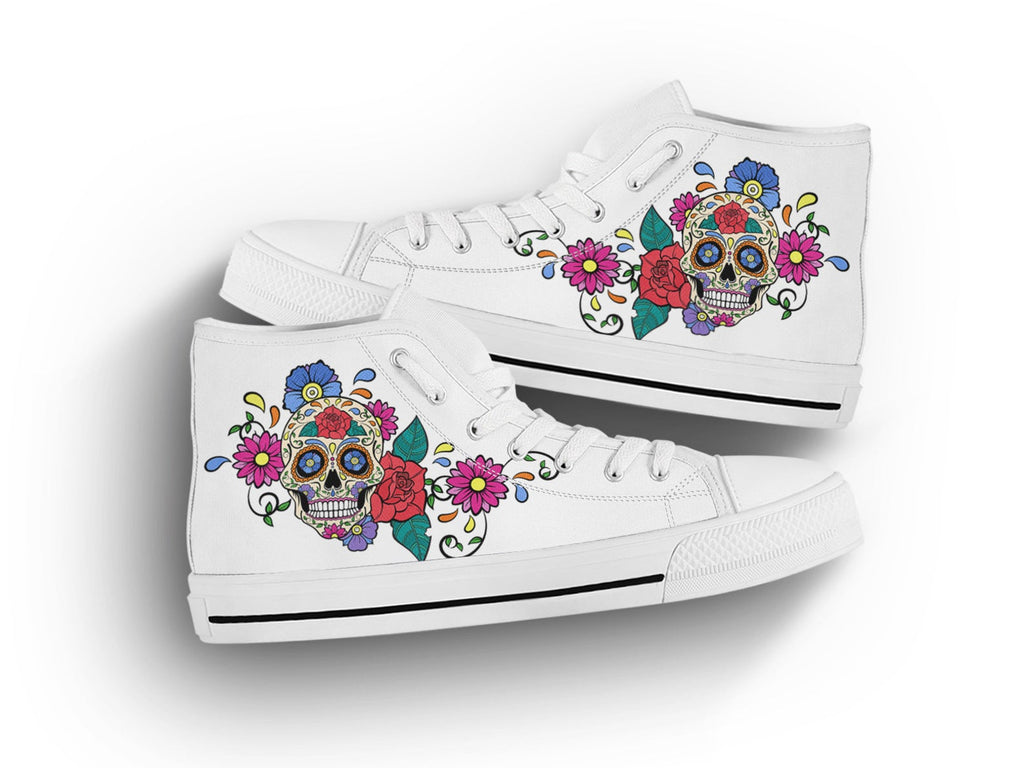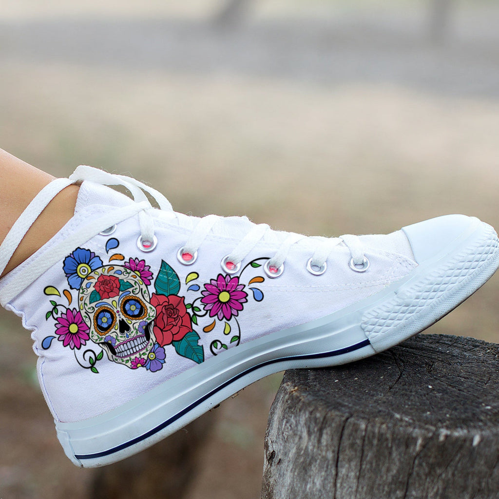 Sugar Skull Shoes Sugarskull Sneakers Cute Shoes Skull Lover Gifts Custom High Top Converse Style Sneakers For Adults Women & Men
